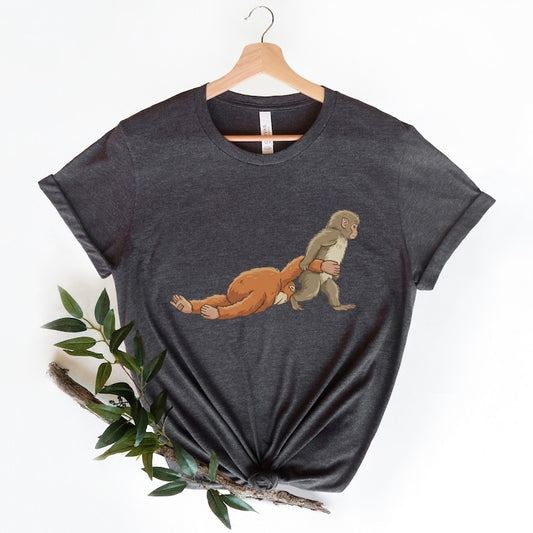 Monkey Punch Graphic Shirt, Baby Monkey Holding Plush Toy Tee, Animal Lover Gift, Cute Trendy Shirt